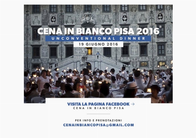 Il Comune di Pisa, l'Associazione Italiana Persone Down Pisa, la Coop ALZAIA con la Coop il Simbolo, organizzano la Cena in Bianco Pisa 2016.